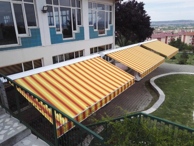 Fakat sabit noktalar için direklere montajı gerçekleştirilerek daha sağlam ve kullanışlı hale getirilebilir.Her çeşit kumaşın rahatlıkla uygulanabileceğini söyleyebiliriz. Çift açılır tenteler için yine uzaktan kumanda, motor, sensör gibi uygulamalar kullanabilmektedir.